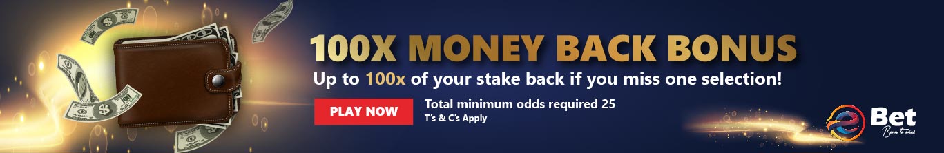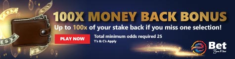 Up to 100x of your MONEY back if you miss only 1 selection!